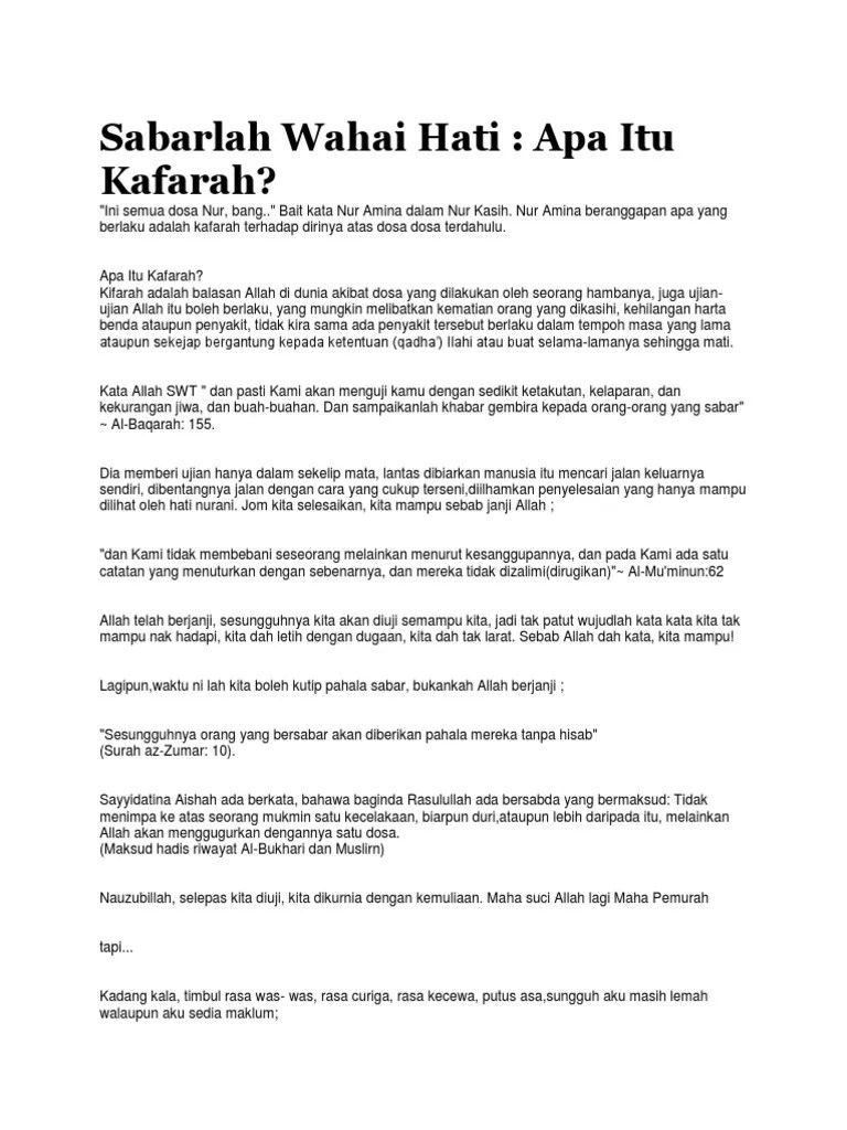 Kifarah Allah Itu Pasti / Note To Self. 6 jenis kifarah penghapus dosa kita. Selagi ketentuan (qada') bagi sakit itu belum menepati qada' allah, maka sakit (kifarah) tadi tidak akan sembuh biarpun pelbagai usaha dilakukan . Aku tak tau solat aku tu . Kifarah allah itu pasti buat galeri lovebeautyshop facebook . 6 jenis kifarah penghapus dosa kita. Setiap makhluk allah yang berakal pasti tak terlepas dari melakukan dosa.